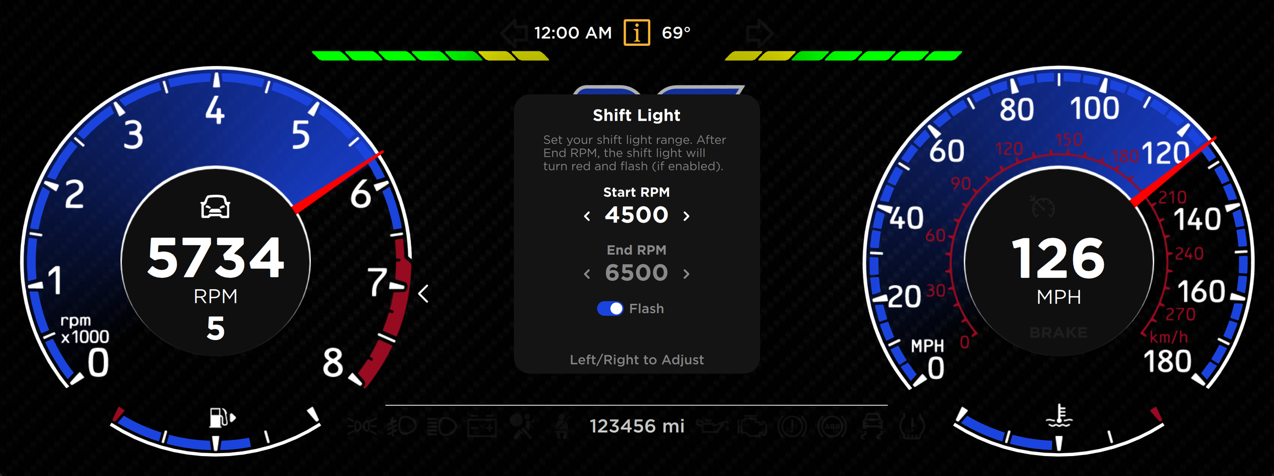Deep Visual Customization - Adjust colors, gauge styles, needle behavior, backgrounds, and shift light behavior.